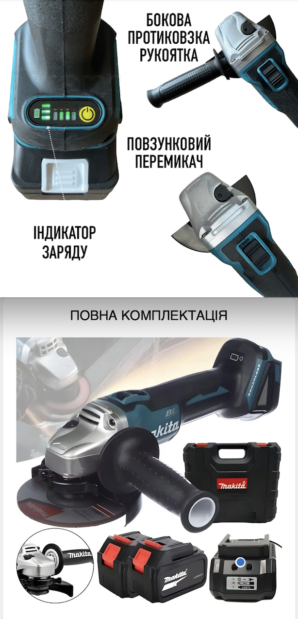 Придбав Makitу для обробки металу та деревини. Інструмент працює добре: потужний, зручний у використанні та має тривалий час роботи на одному заряді. Особливо вражає швидкість та якість шліфування.